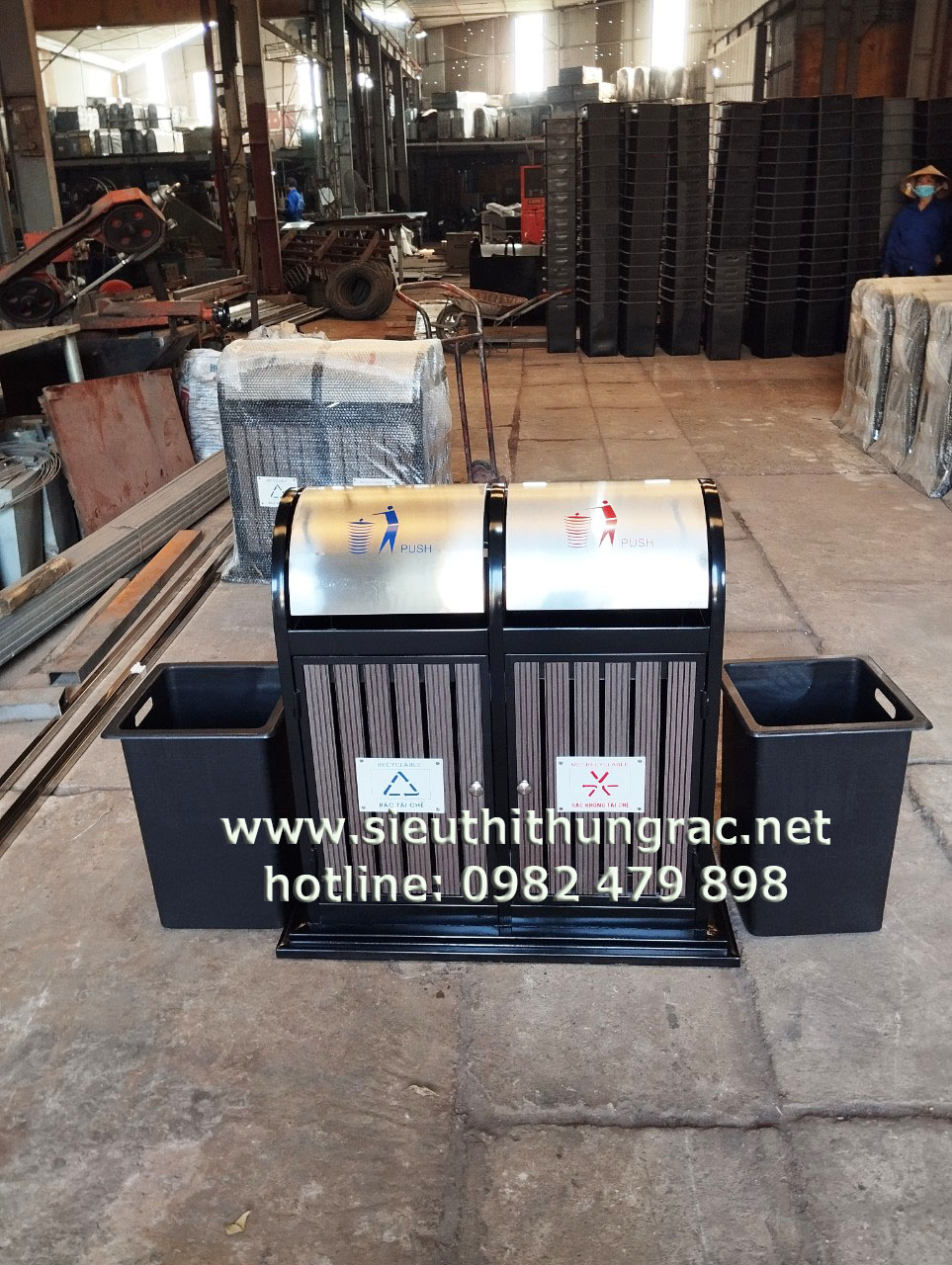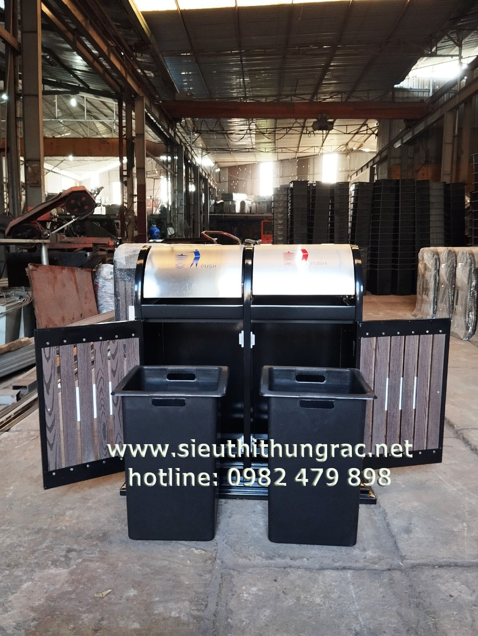 – Thùng có hai ngăn để phân loại rác thải. Mỗi ngăn đều có lõi đựng rác bằng tôn